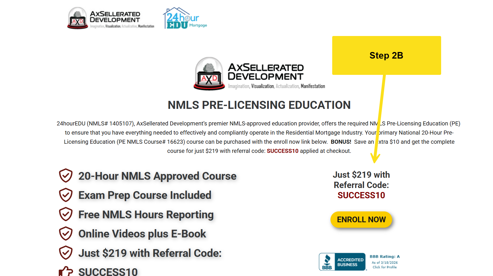 All candidates for mortgage loan originator licensure must successfully complete an NMLS-approved, 20-hour national pre-licensing education (PE) course. We enthusiastically encourage you to register for and complete your online 20-hour PE course through 24hour EDU (#1405107), the premier NMLS-approved education provider (save $10 off of the already-low registration fee by using coupon code SUCCESS10 when registering through the AxSellerated Development website).
